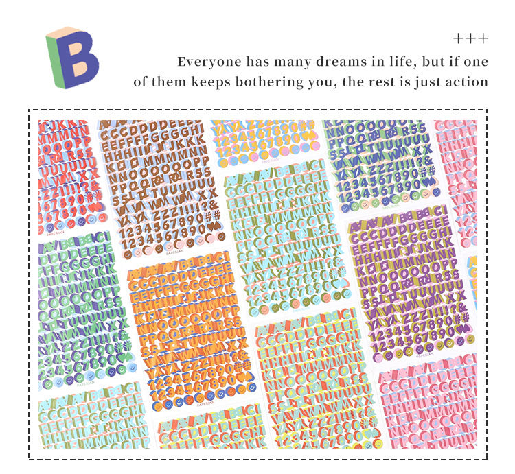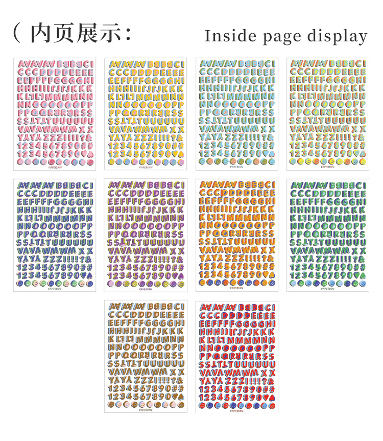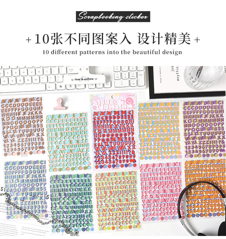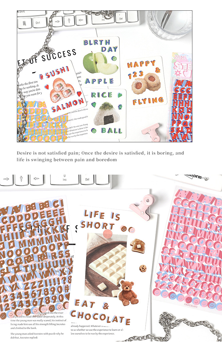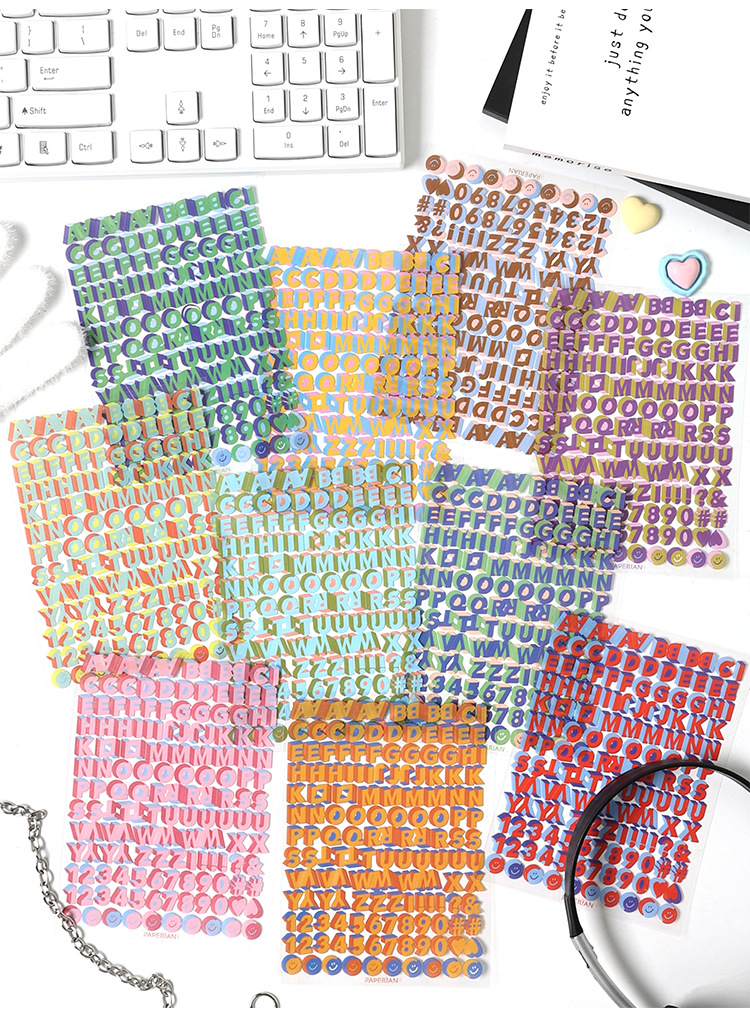 Xj0018新品アルファベット数字シール一式6枚入オフィス文教装飾シール手帳日記diyシール