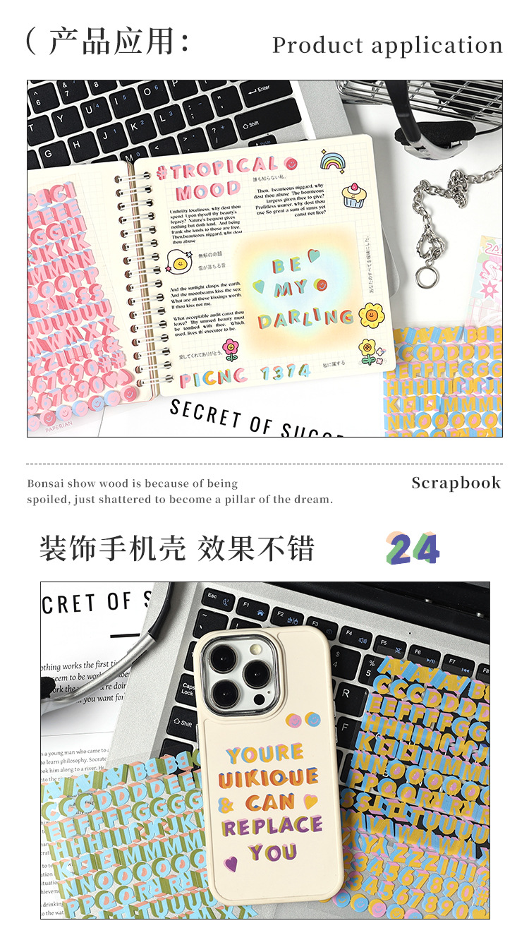 漫画幼円体カラーレーザーアルファベットシールキャンディー色英語大文字不乾性diy手帳カード貼り