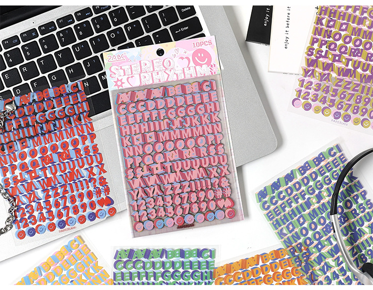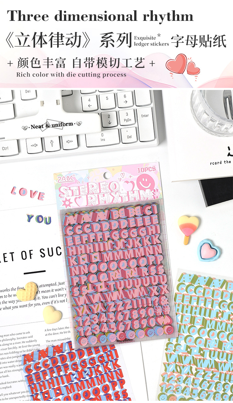 立体律動透明防水petシールdiy手帳日記ステッカークロスボーダー立体アルファベット数字手帳ステッカー