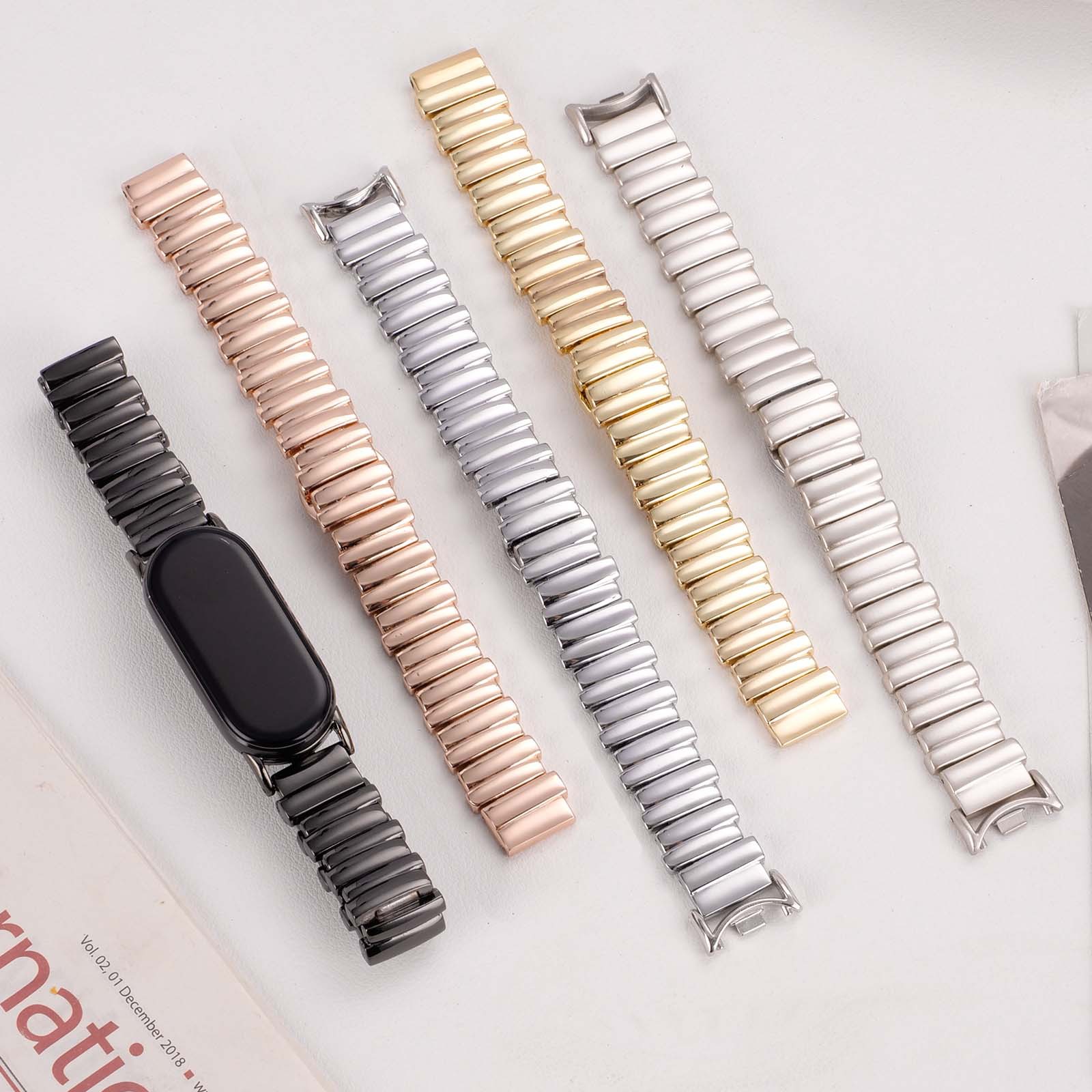 Xiaomi 8/9proステンレス製五珠ソリッドブレスレット、Xiaomi Mi Band 9/10、Redmi Watch 4/5/6のストラップに適しています。
