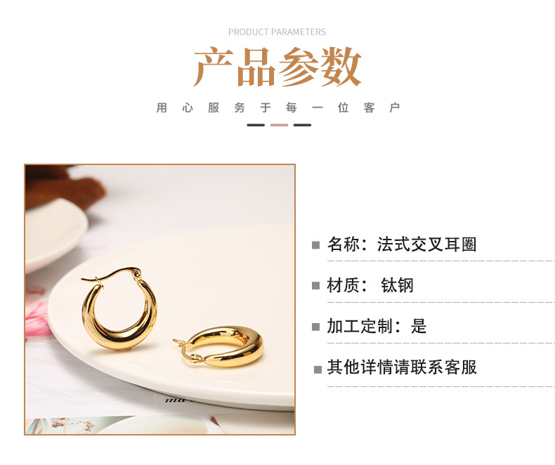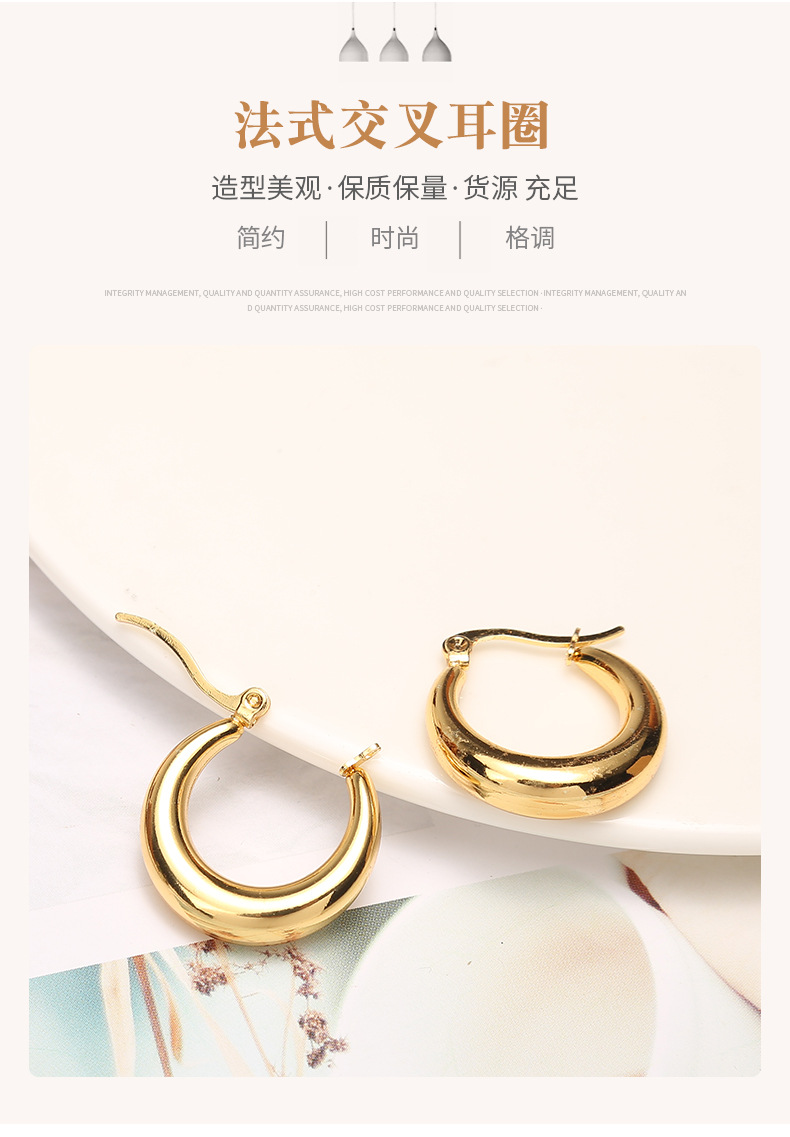 女性用フレンチクロスチタン鋼イヤリング、女性用シンプルでエレガントなメタリックイヤリング、ファッショナブルなラウンドプレーンイヤリング