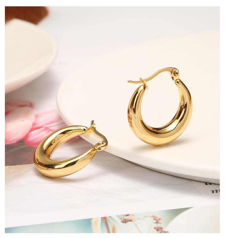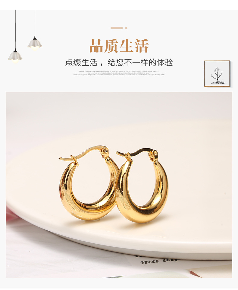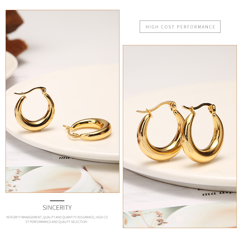 シンプルなコールドスタイルのプレーンフープイヤリング、新しい人気のクラシックなファッション気質、U字型チタン鋼フープイヤリング、レディースジュエリー