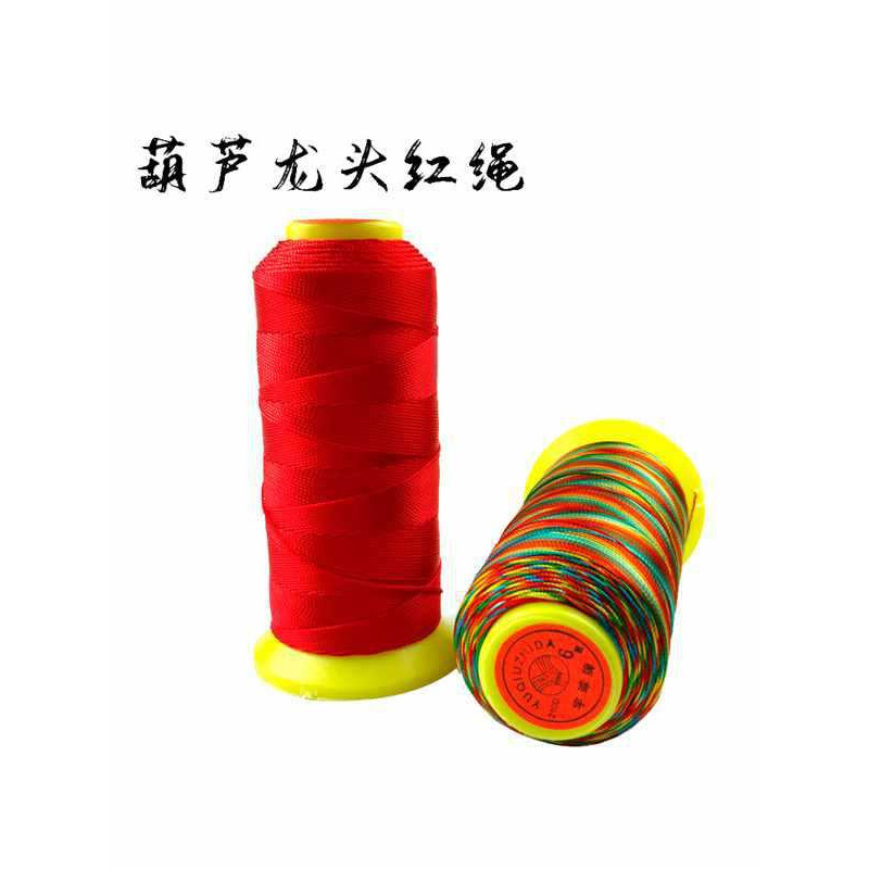 ヒョウタンの蛇口の赤い縄を巻いて大きいサイズのヒョウタンの縄の車を縛って5色の縄を掛けます。