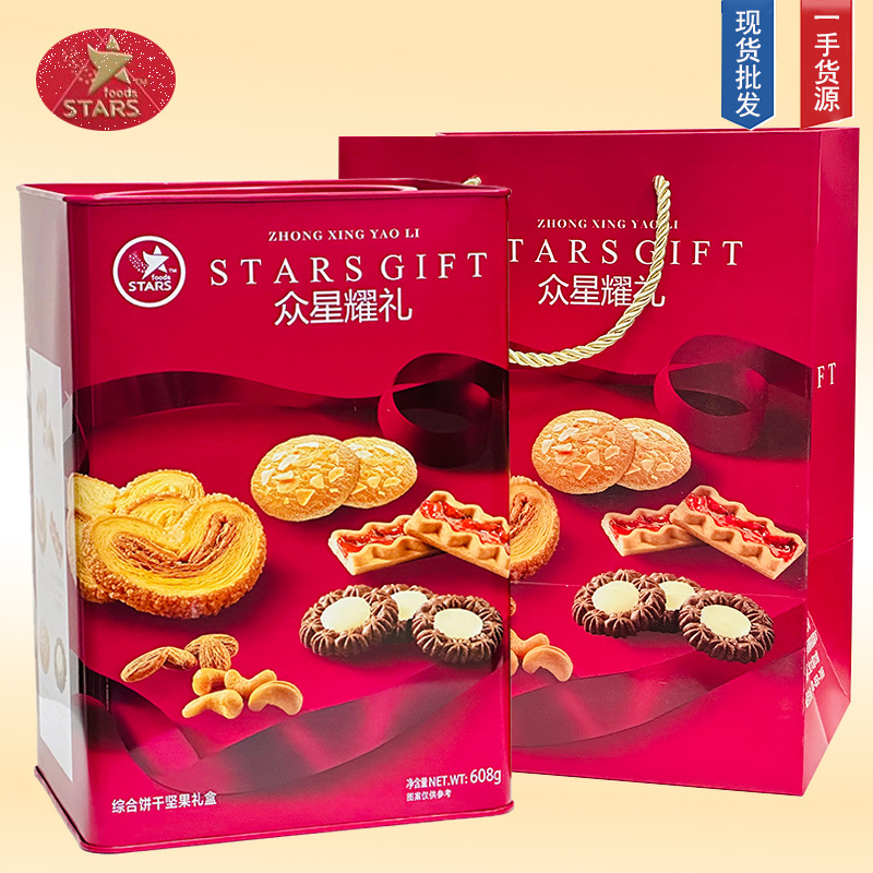 香港众星耀礼综合饼干坚果礼盒608g蝴蝶酥曲奇年货结婚庆送礼爆款