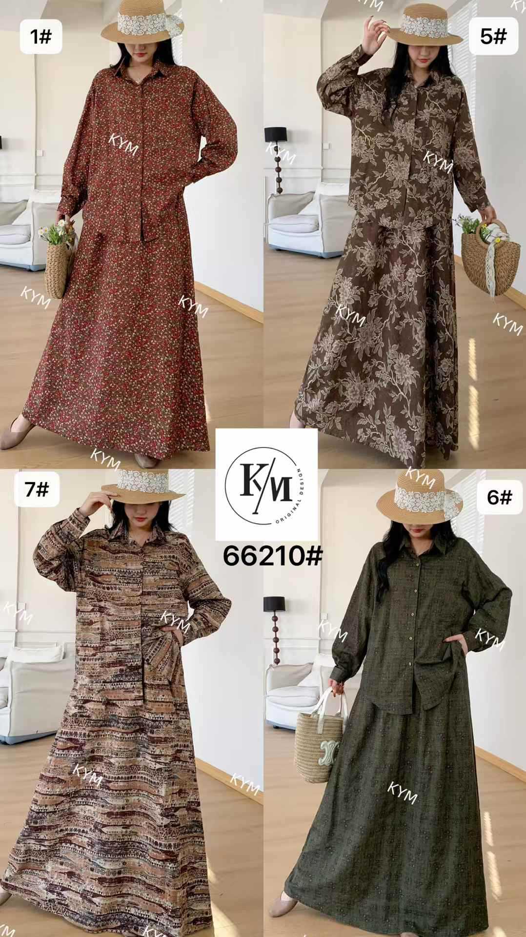 km66210 文学的で芸術的な花柄ルーズ長袖シャツ+スカートレディース新作カジュアルレトロツーピーススーツ