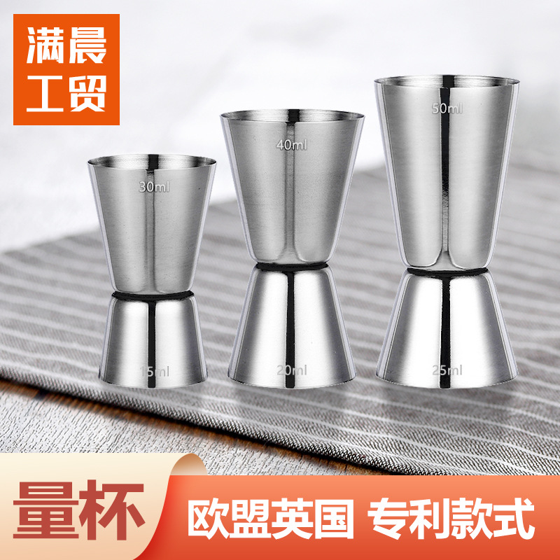 Amazonクロスボーダーステンレス鋼計量カップバーカウンター計量カップオンスカップバー大、中、小の3つの双頭ワイン計量カップ