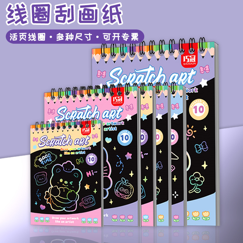 炫彩刮画纸线圈活页刮画本diy涂鸦多尺寸刮刮画多色多款创意刮画