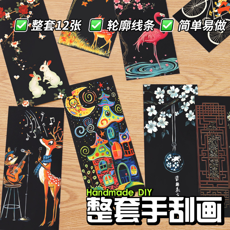 创意刮刮画纸便签书签彩色刮纸幼儿园手工制作diy礼物解压玩具