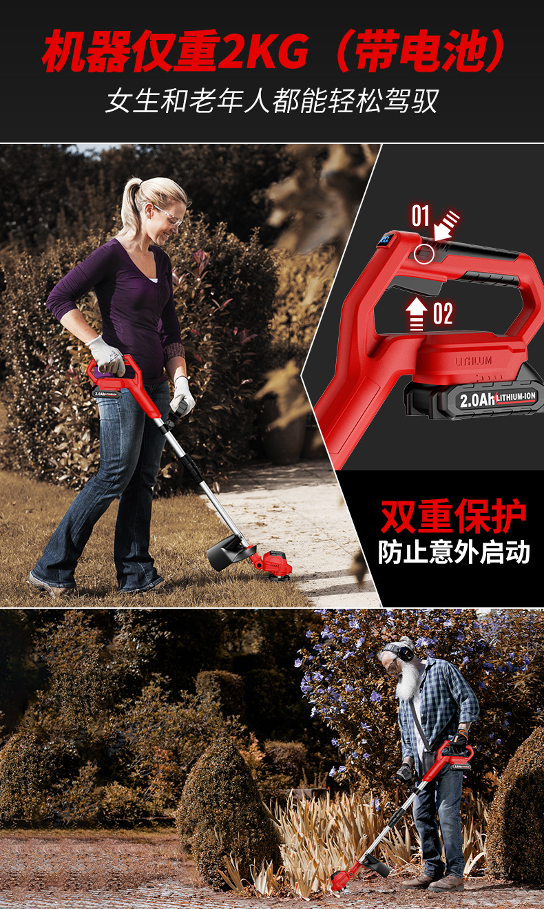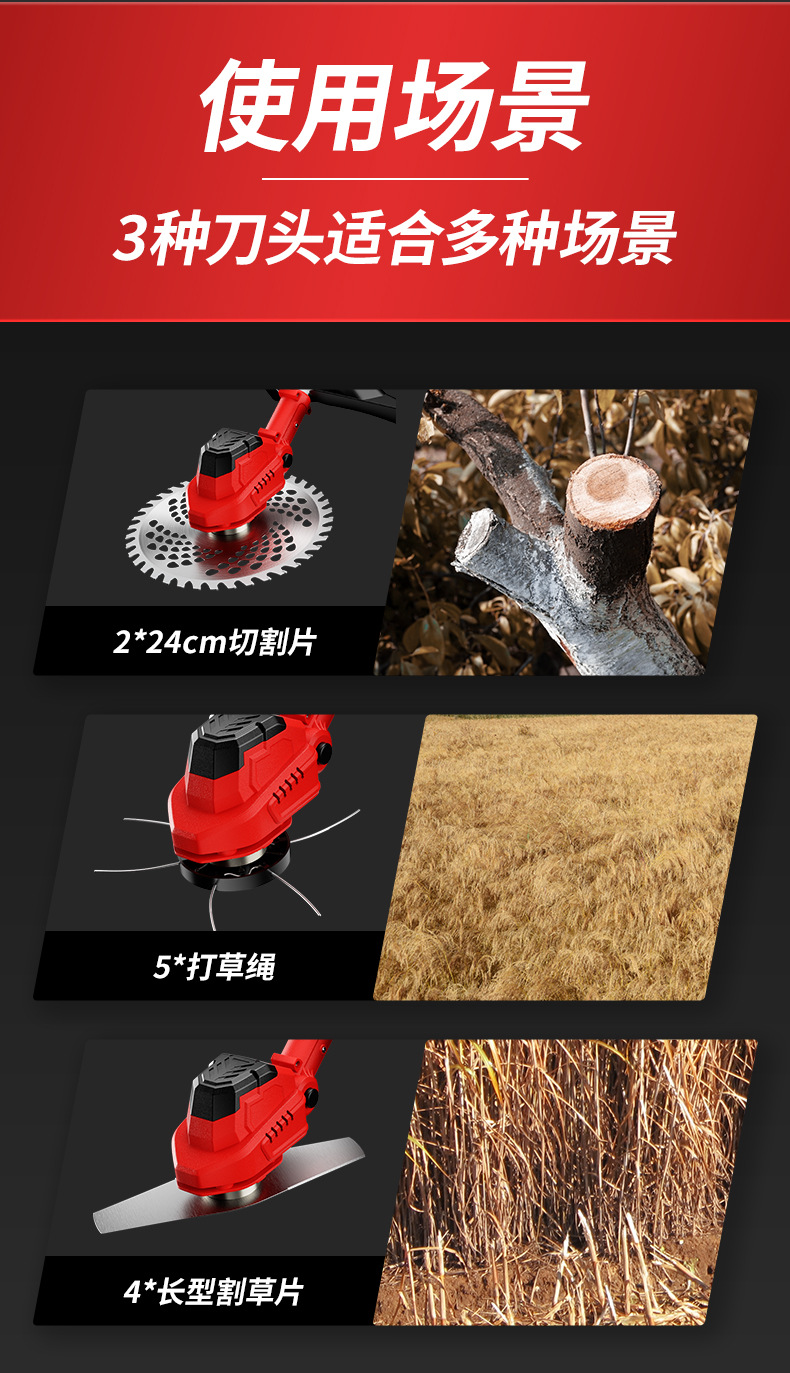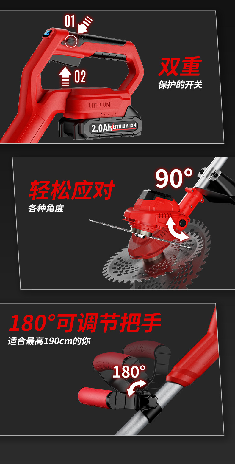 電動芝刈り機、ブラシレスハイパワー草刈り機、家庭用小型草刈り機、充電式多機能芝刈り機