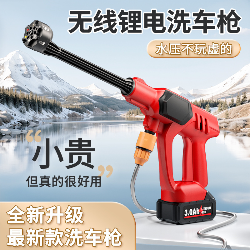 リチウム電池式洗車ガン、ポータブル高圧電動6-in-1ノズル洗車機、花の水やり、ワイヤレス充電