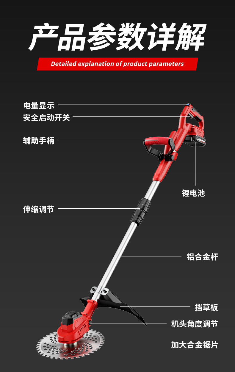芝刈り機ブラシレス充電式家庭用農業用ハイパワーリチウム電気長航続高効率美標欧標対外貿易工場