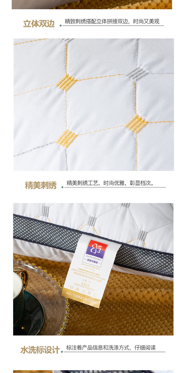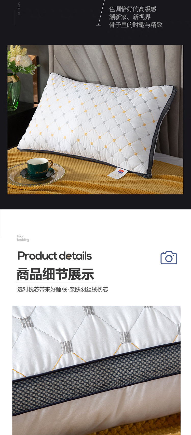 人気のヒルトンホテル枕キルティング刺繍フェザーベルベット枕コア高弾性非崩壊単一学生頚椎枕