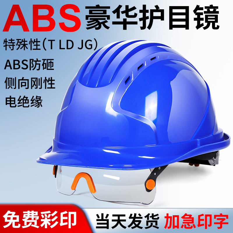 安全ヘルメット、建設現場、工事現場、保護メガネ付き、高級、通気性、リーダー、男性電気技師、絶縁ヘルメット、印刷入り