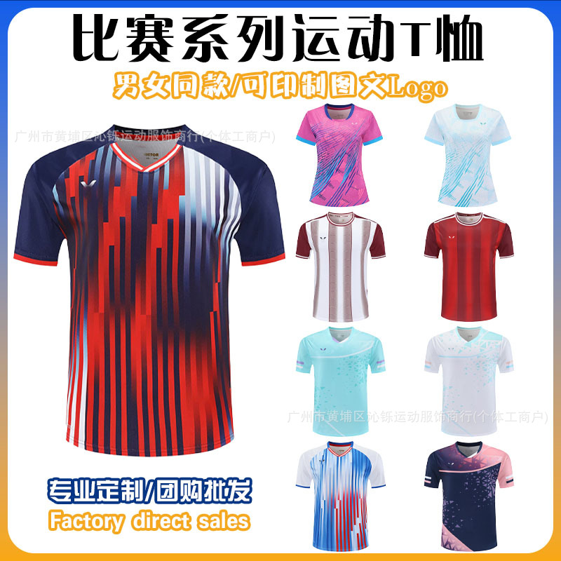 2025新型勝利バドミントン服大会服速乾通気性男女児童同訓練半袖印字可能