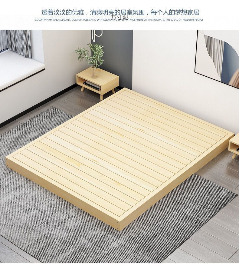 实木日式榻榻米床落地式出租房折叠床架现代双人排骨架卧室木板床