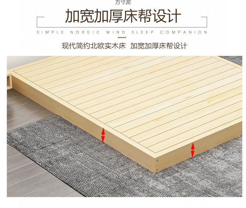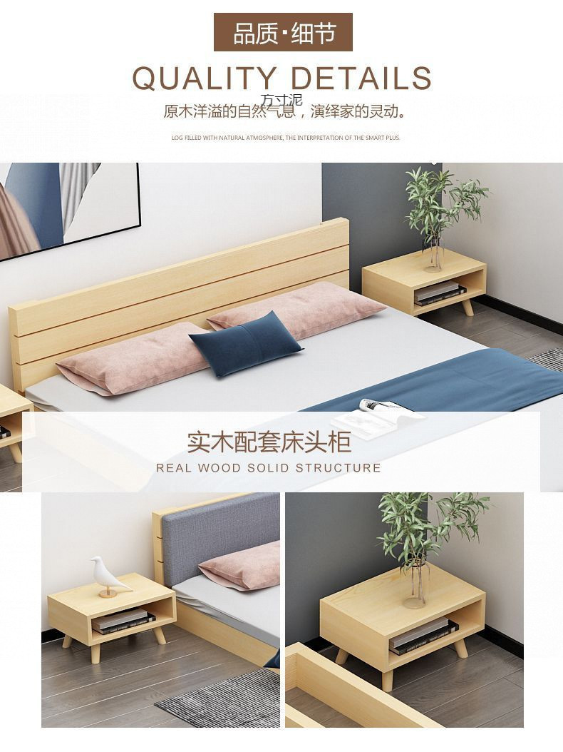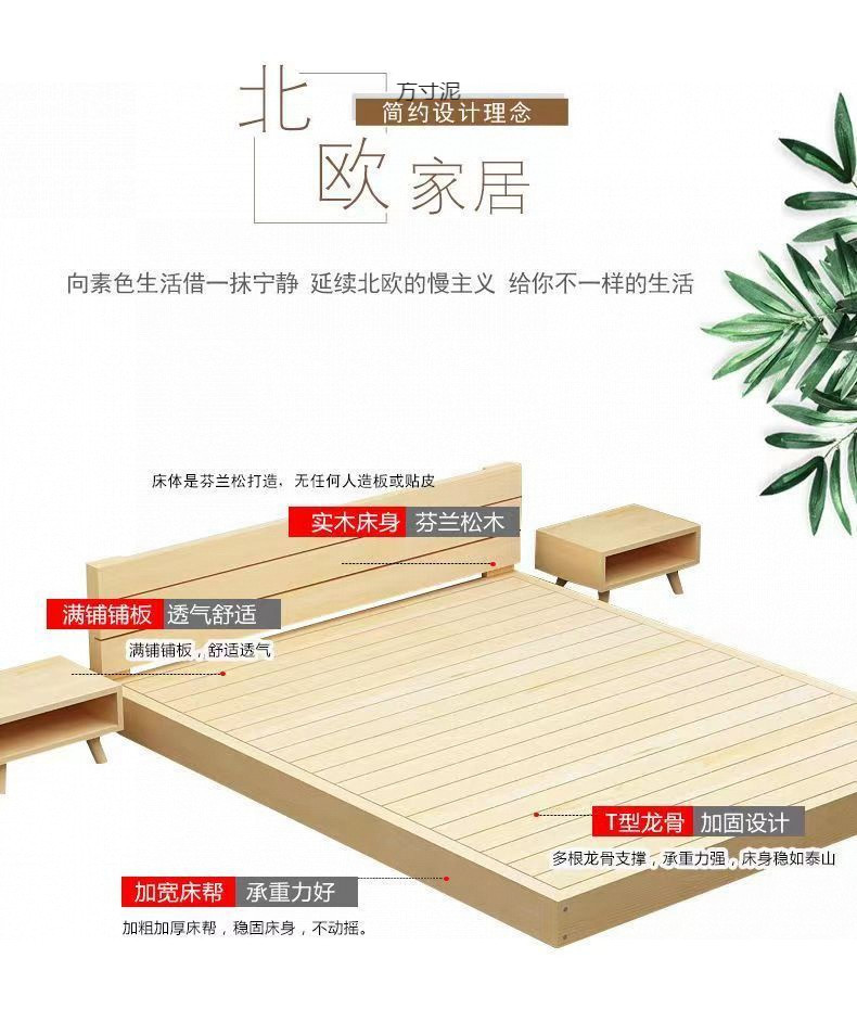 简约现代松木实木床1.5米出租屋单人1米带抽屉储物1.2米床出租房