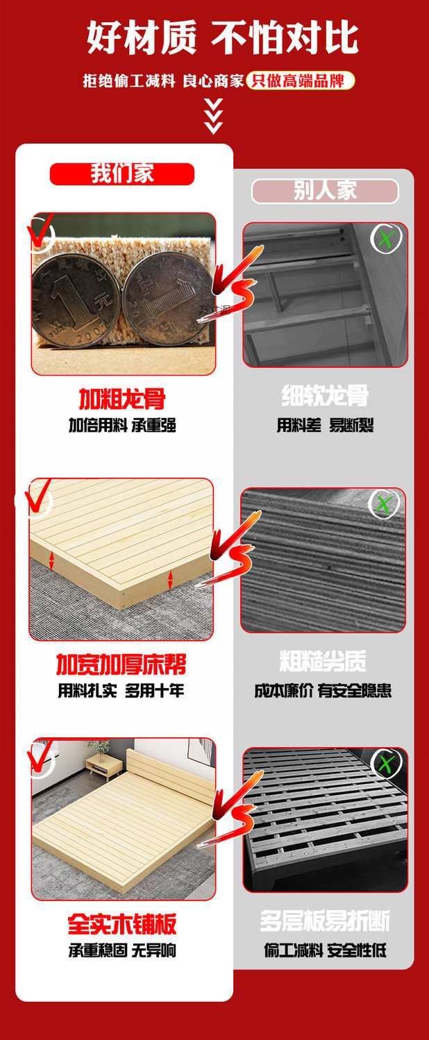 ベッド1.5用実木ダブルベッド1.8x2経済型現代シンプルシングル賃貸ベッド1mベッドフレームサプライチェーン
