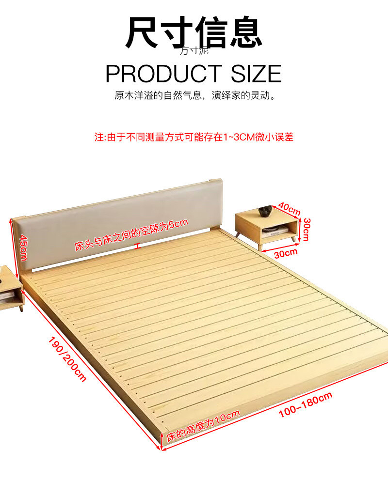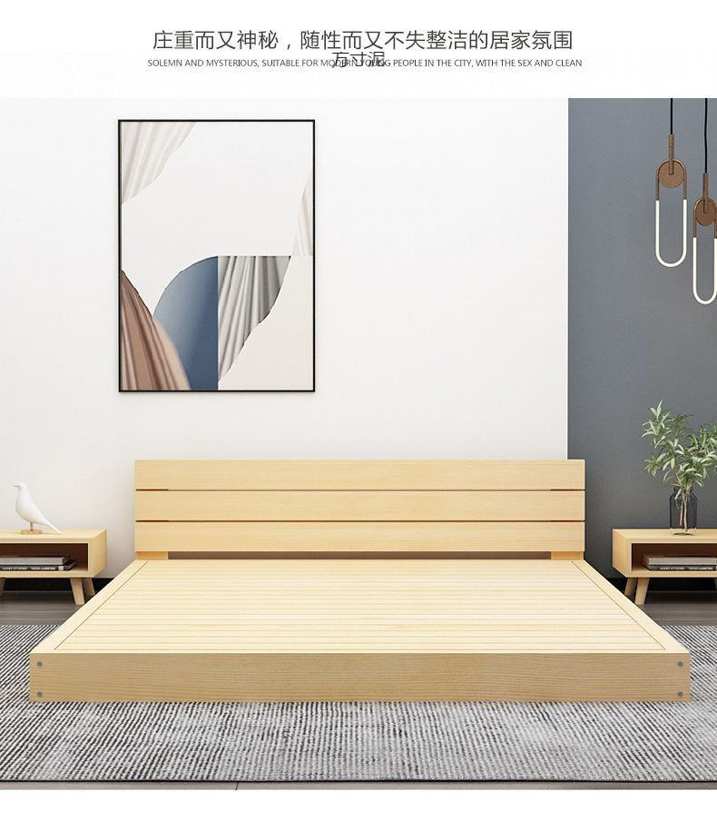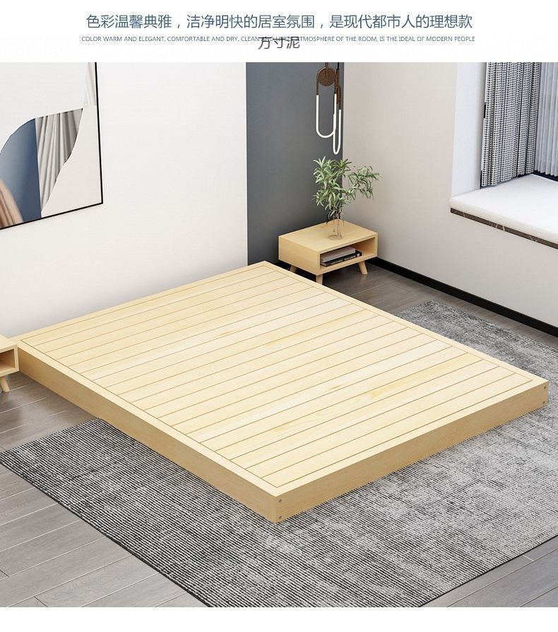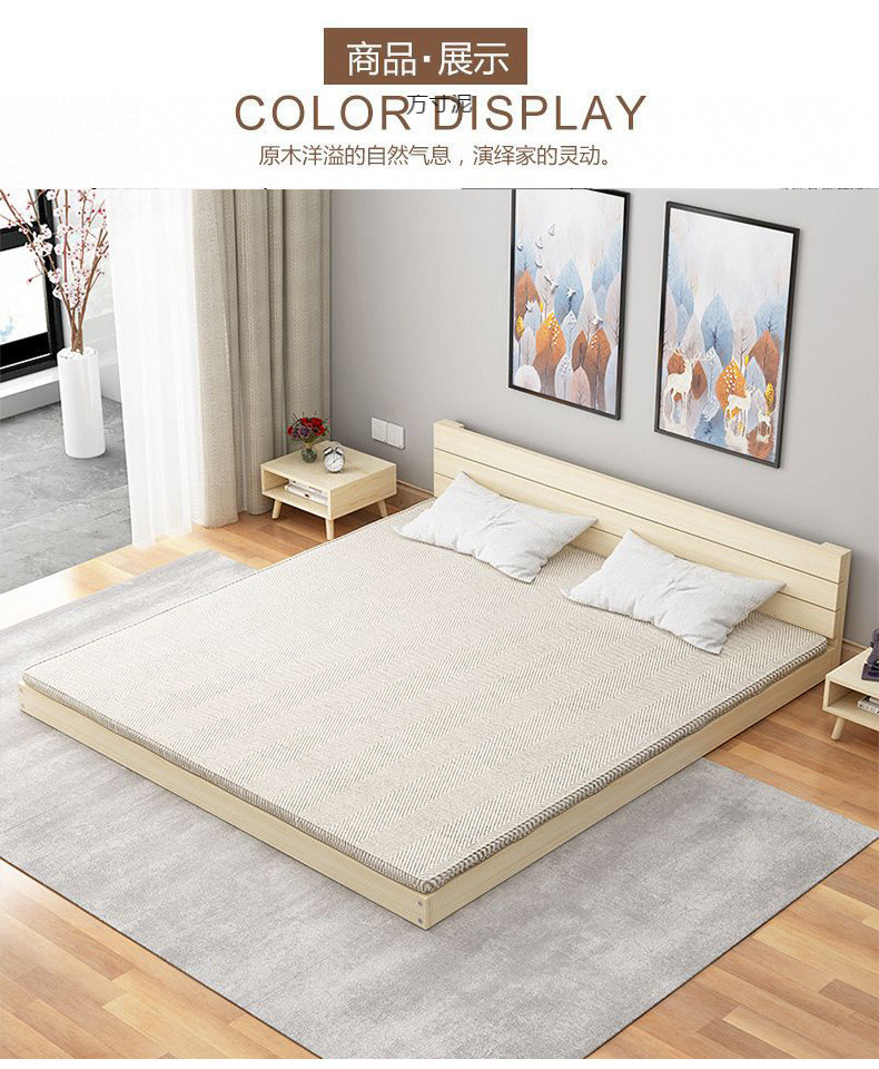 無垢材ベッド、畳、和風ソフトベッド、シンプルな床置きホテルベッド、マスターベッドルーム、B&B、ダブルベッド、ローベッドサイド卸売