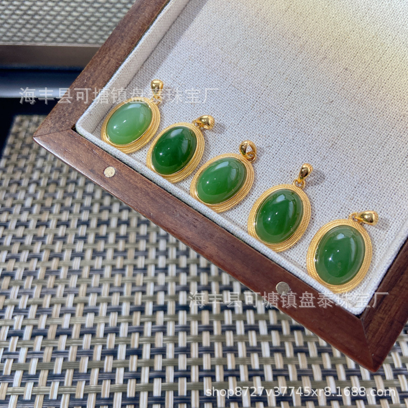 メーカー卸売り天然和田玉碧玉鞍設計金国潮風ペンダントS925銀モザイク