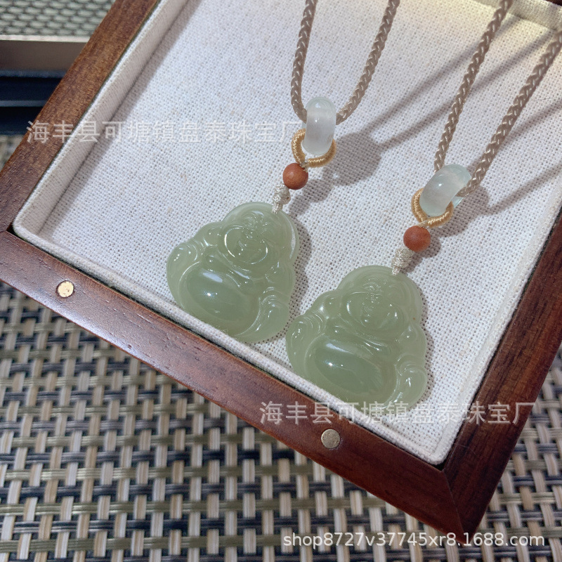 メーカー卸売天然Hetian翡翠仏陀セーターチェーンネックレス調節可能なS925シルバー象嵌