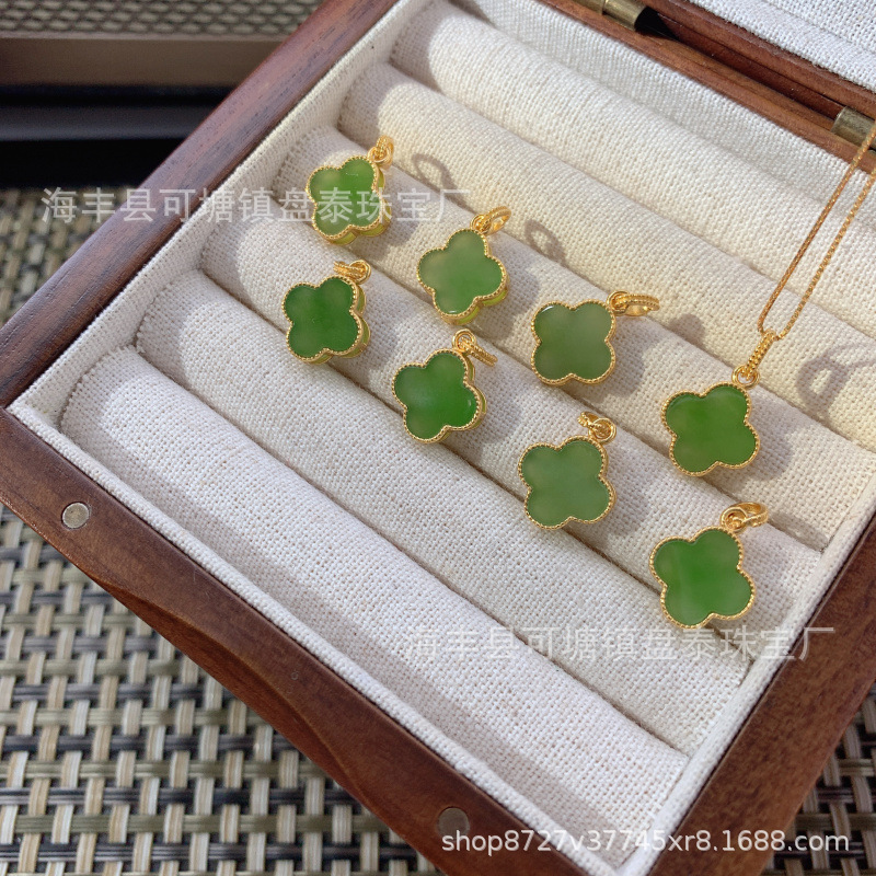 メーカー卸売り天然和田玉碧玉四つ葉草ペンダントS925銀モザイク