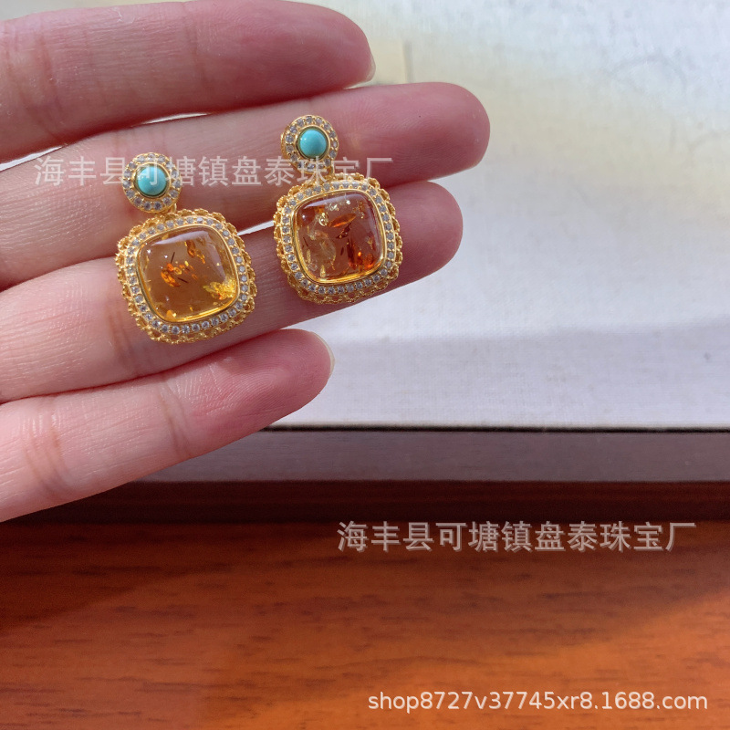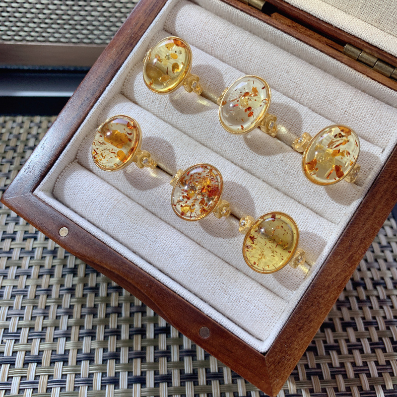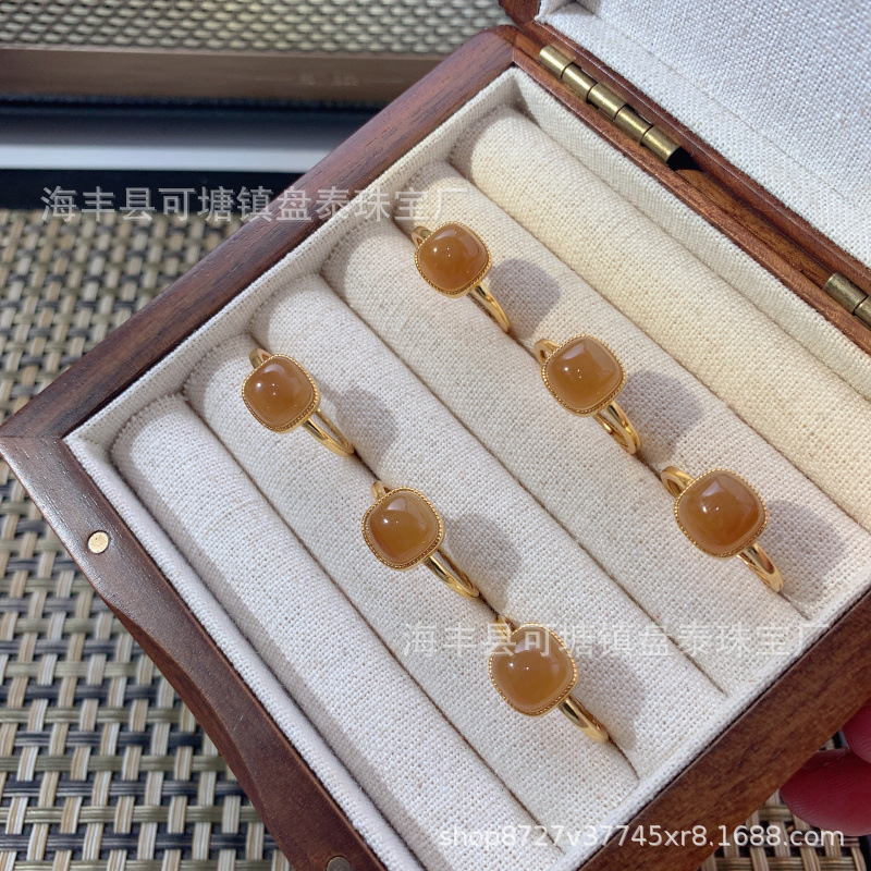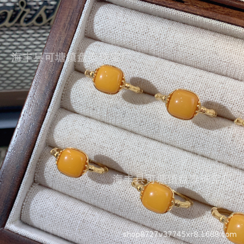 メーカー卸売り天然ロシア材料ミツロウ老蝋方糖指輪S925銀モザイク