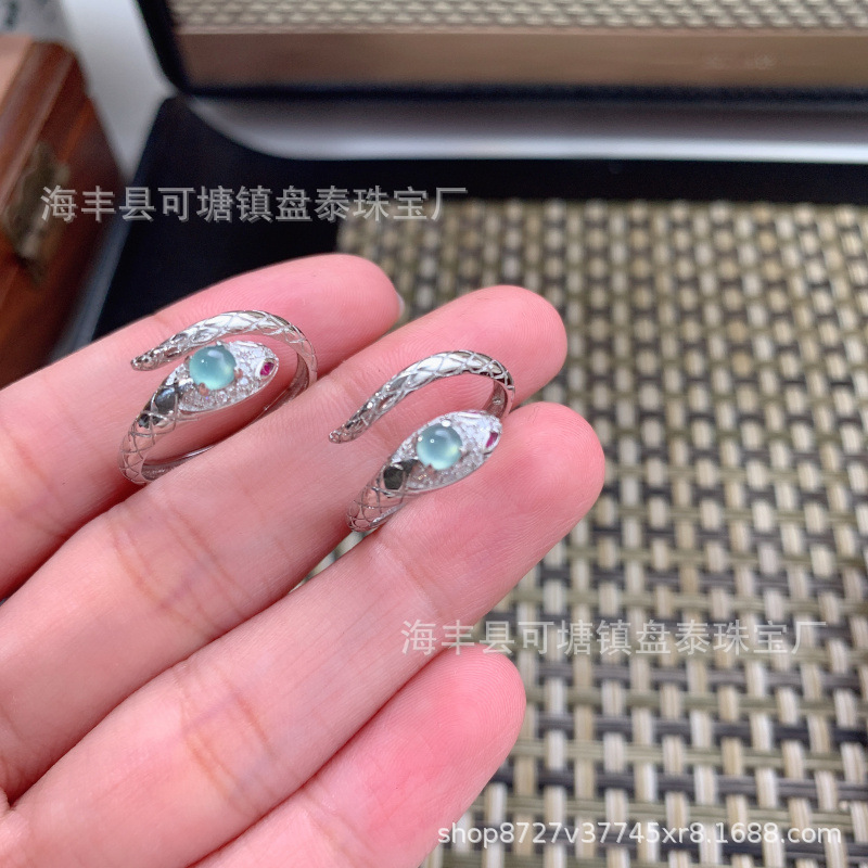 メーカー卸売り天然危険材料藍水翡翠蛇戒指輪S925銀モザイク