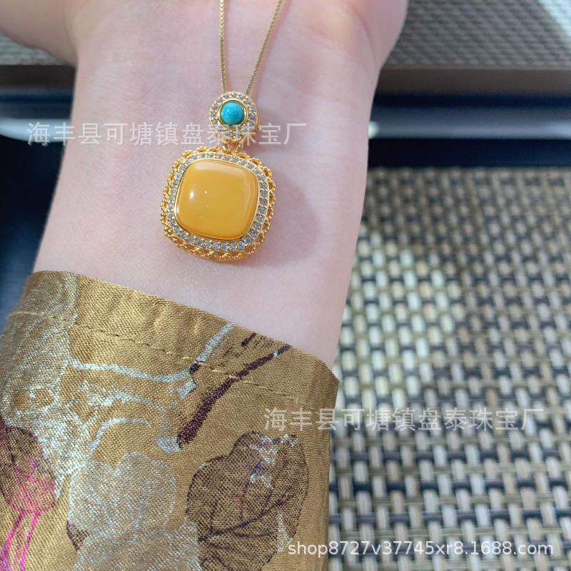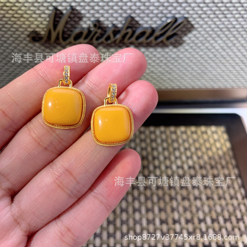 メーカー卸売天然蜜蝋オールドワックススクエアペンダントS925シルバー象嵌