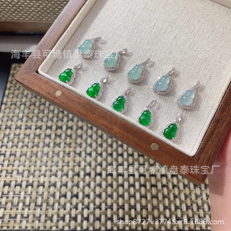 メーカー卸売り天然危険材料翡翠ひょうたんデザインペンダントS925銀モザイク