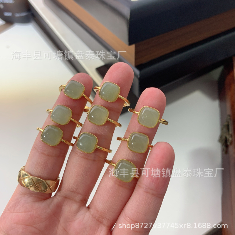 メーカー卸売り天然青海料晴水と田玉方糖小清新指輪925銀モザイク