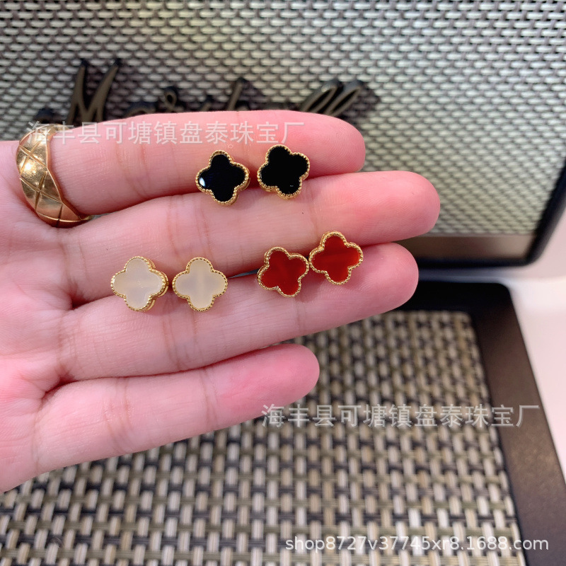 メーカー卸売 天然和田玉四つ葉のクローバー赤瑪瑙イヤリング 環状装飾直径8mm S925銀象嵌
