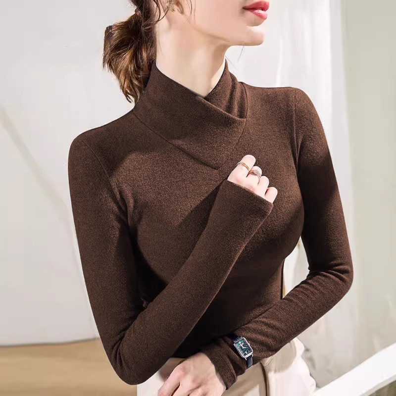 洋気減齢ねじ徳パイル長袖シャツ秋冬新デザイン感半高襟インナーtシャツ女性