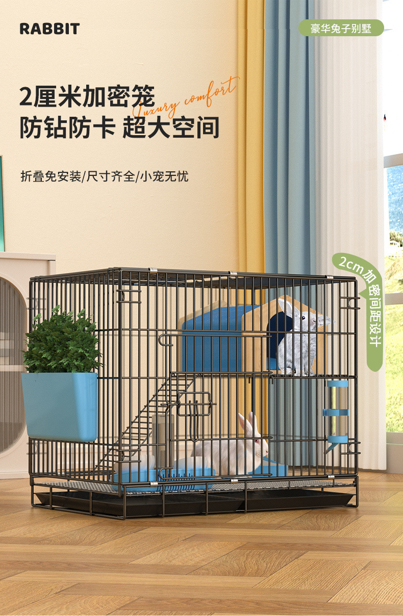ウサギのかごの家庭用の大きいサイズの二重ウサギの別荘の室内はトイレの自動清糞のモルモットのかごのウサギの巣を持って郵送します。