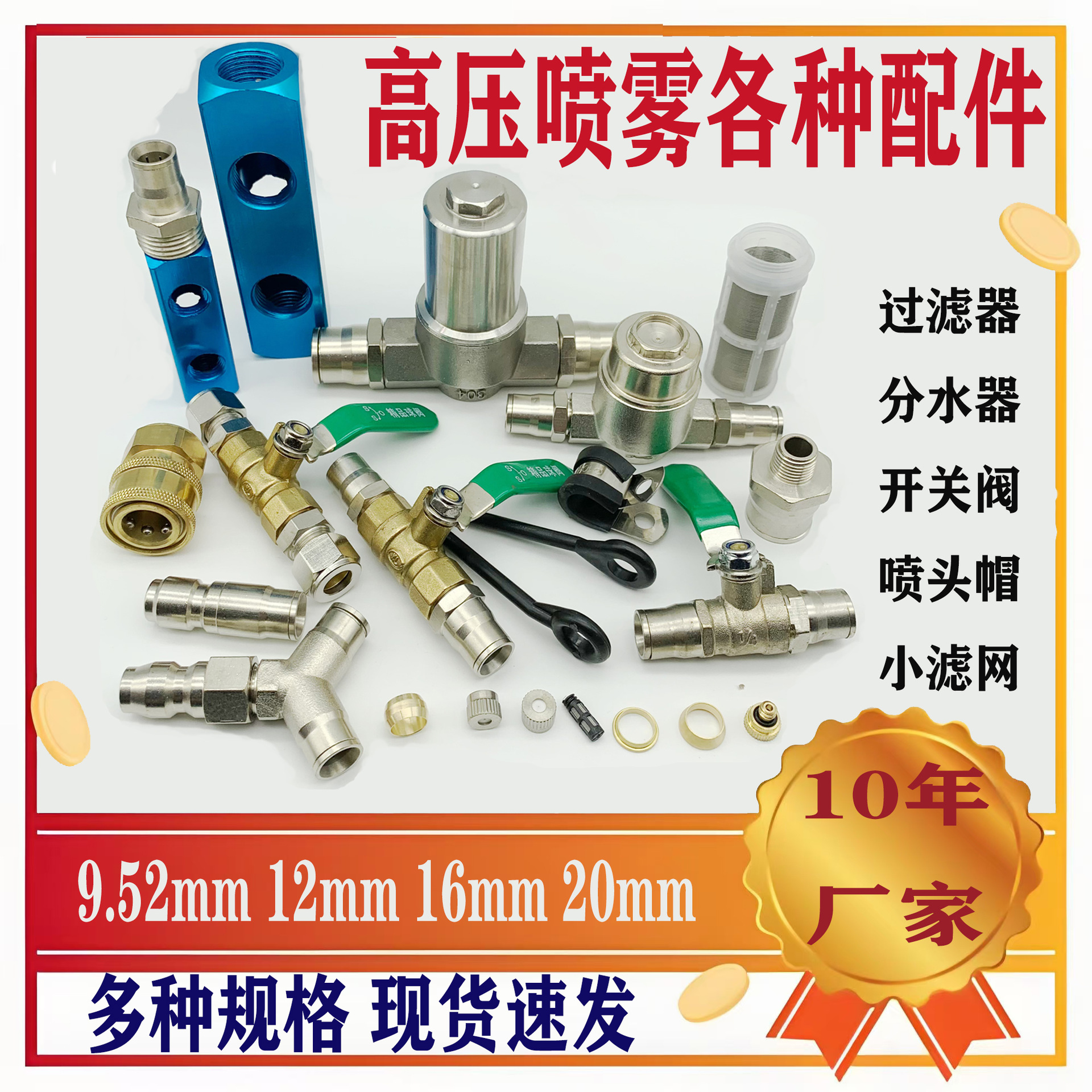 9.52 高圧霧化アクセサリーノズルスプレークイックプラグ直接エルボ三方プラグ繊維加湿スプレー