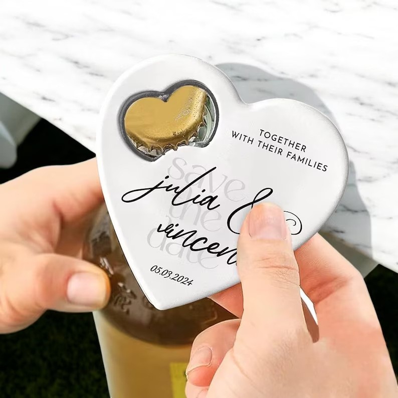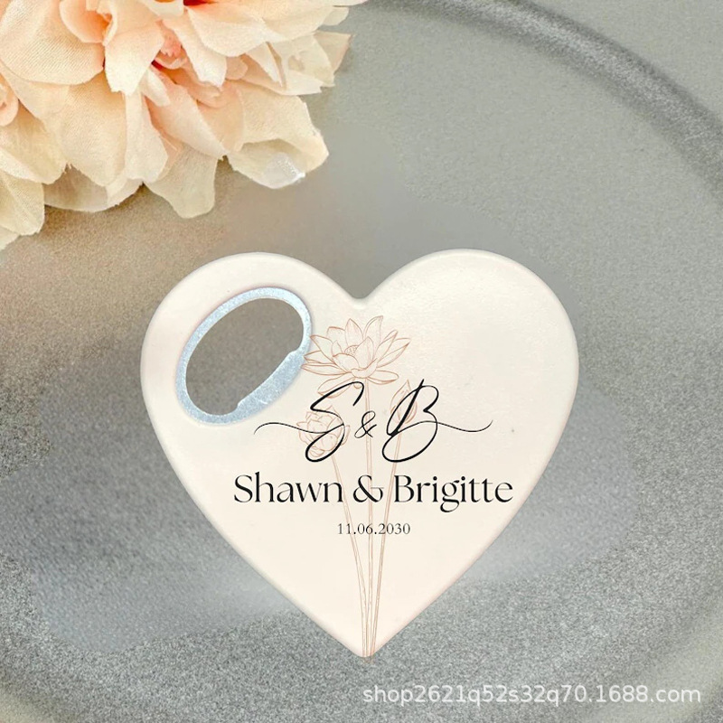 etsy ホット販売印刷カスタム樹脂ボトルオープナーハート型ウェディングマグネット誕生日記念小さなギフト磁気吸引