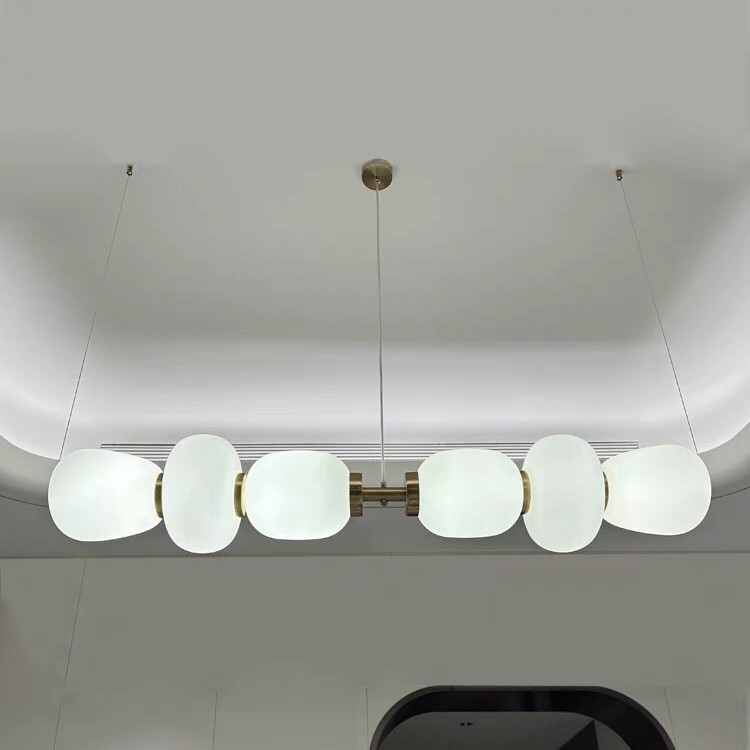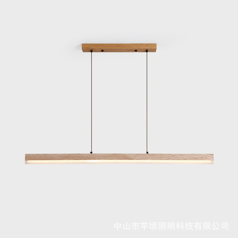 极简餐厅吊灯一字长条餐厅吊灯黄洞石中古餐桌岛台茶室胡桃木复古