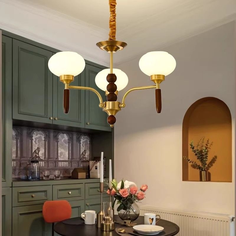 中古风全铜实木客厅吊顶复古百搭款酒店主厅吊灯美式简约中山吊灯