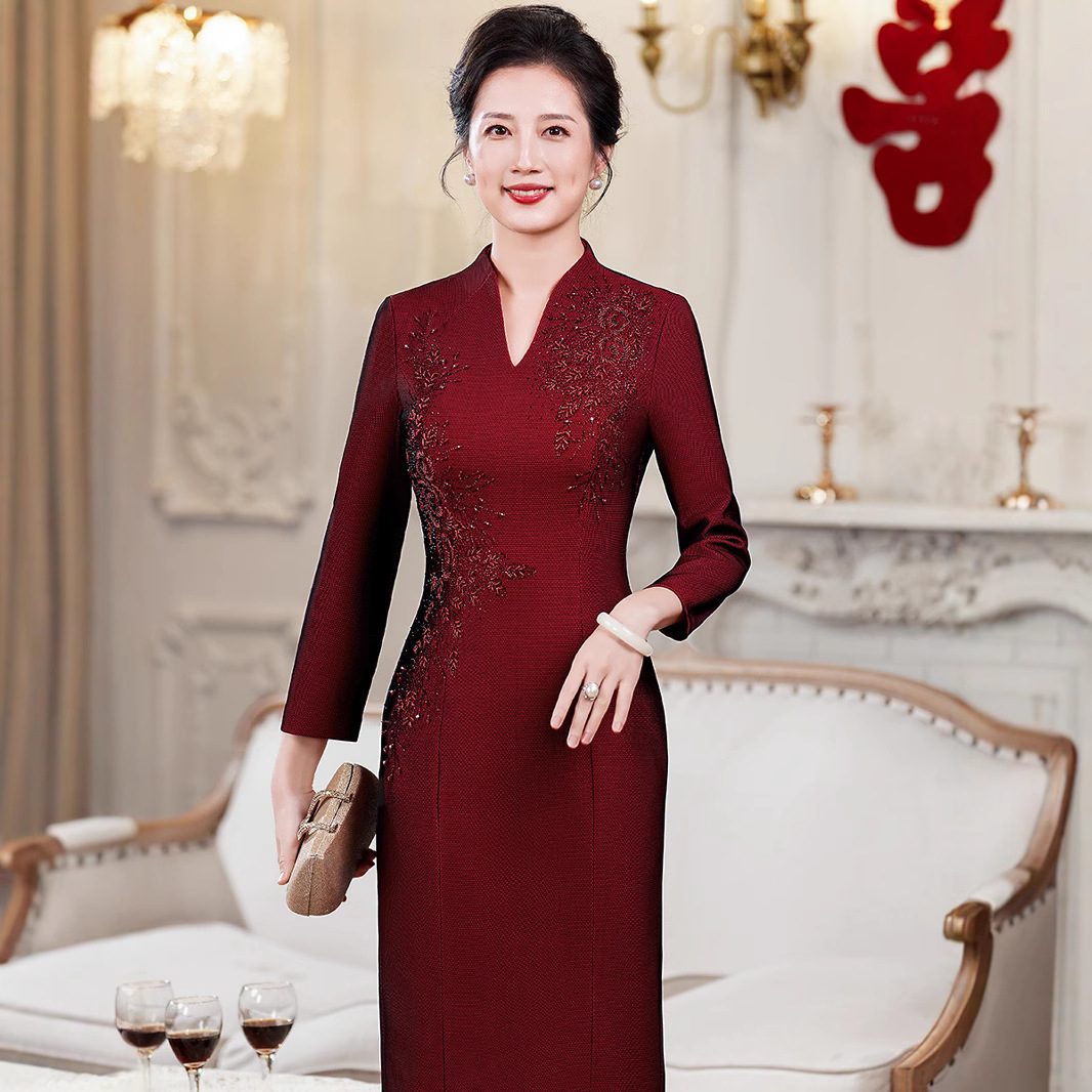 2025春装刺繍高級母結婚ドレス秋春装新喜姑装本命年日常着可