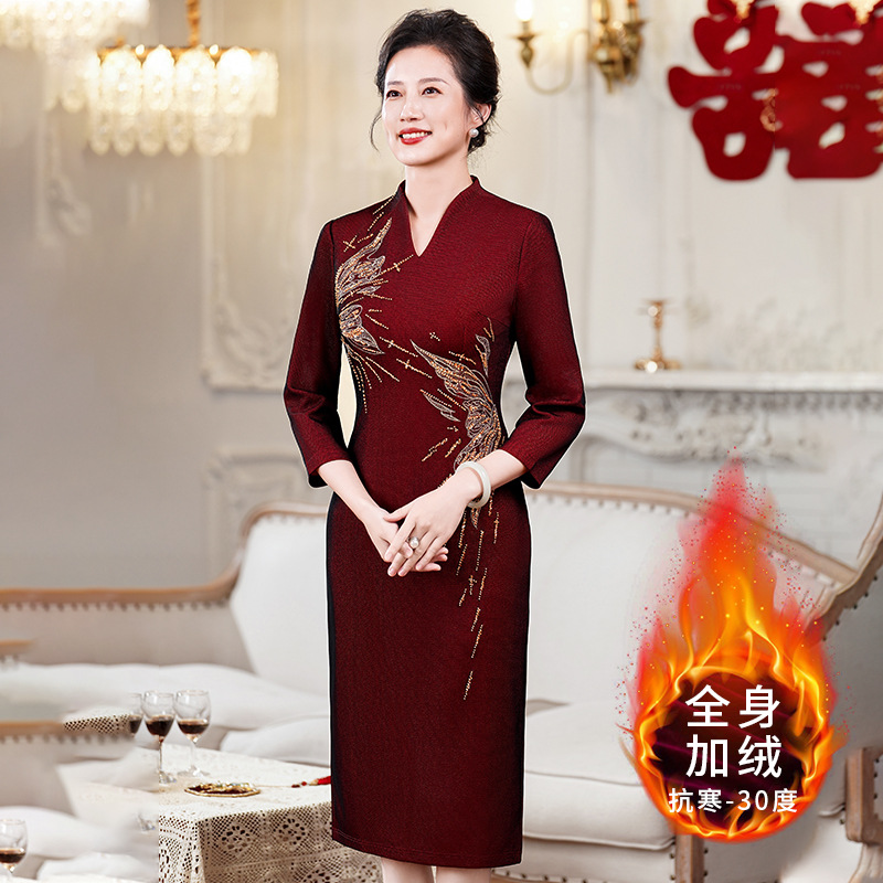2025冬装加厚高端加绒加厚旗袍气质秋冬婚宴喜婆婆新款礼服妈妈