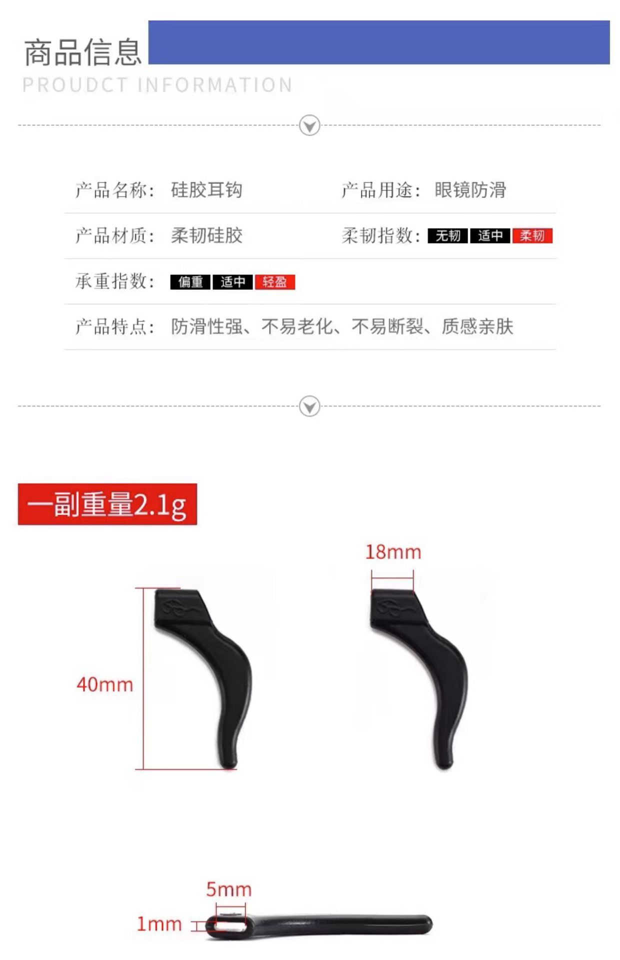 厂家直销耳套耳勾眼镜硅胶耳钩运动防滑耳套硅胶眼镜防滑配件