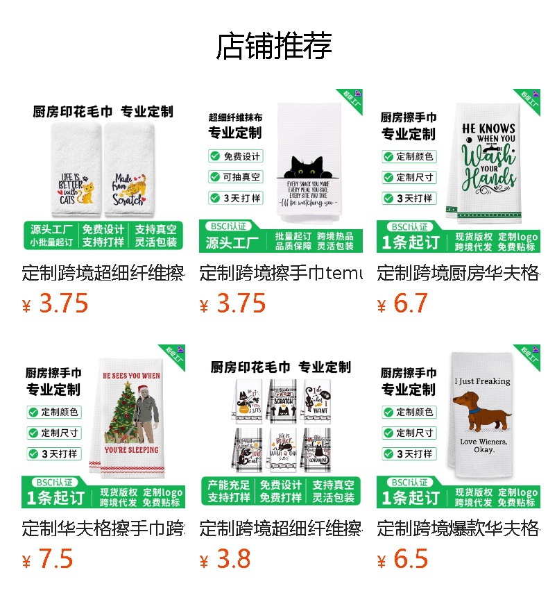 カスタマイズされた国境を越えた売れ筋マイクロファイバー手拭きタオル、レストランの食事用クリーニングタオル、図面デザインのデジタルプリントタオル