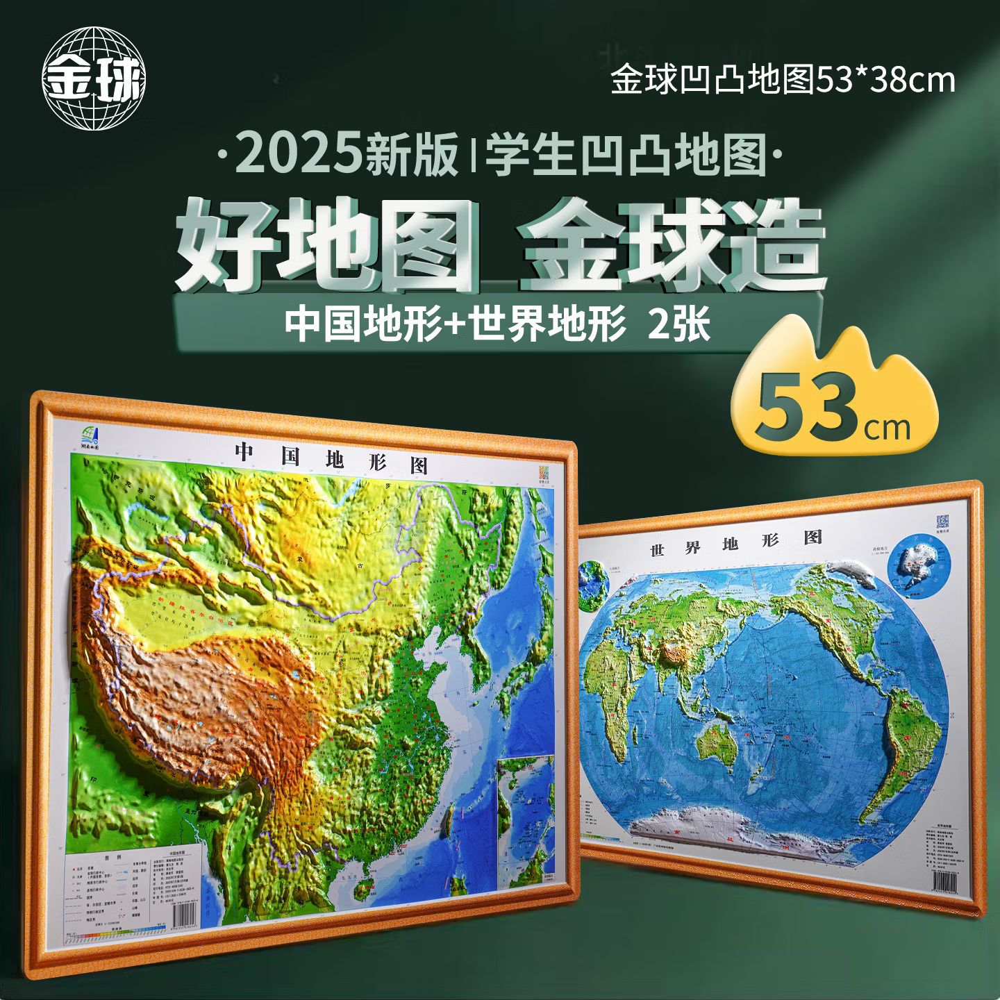北斗新版中国地图世界地图3D立体凹凸地形地图学生老师教学学习用