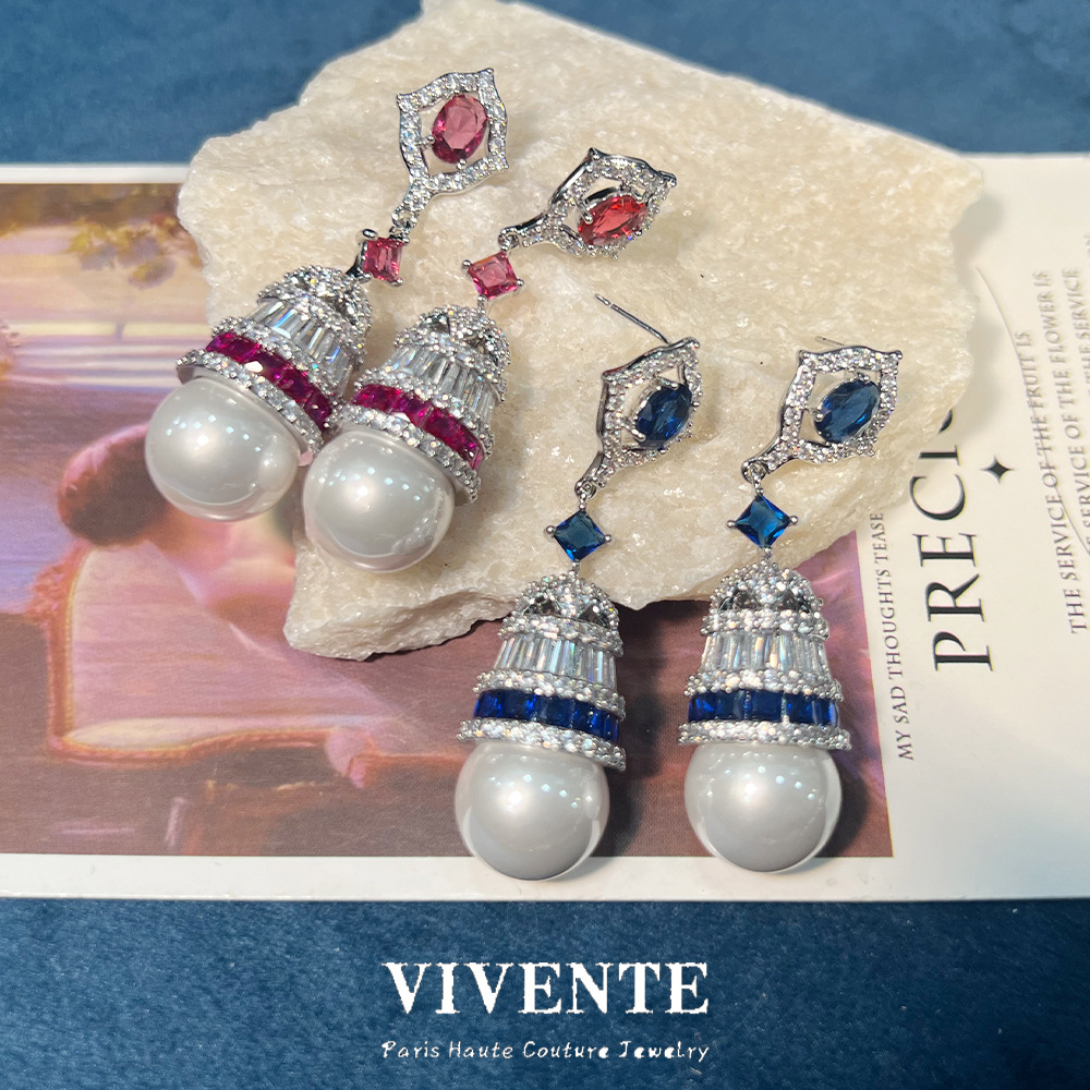 新商品のジルコニウム真珠のイヤリングは宮廷風の銅をめっきします。