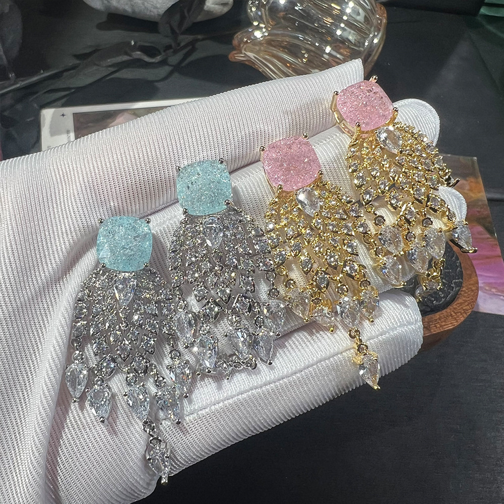 雑誌花火チェコドリルロジウムメッキ色落ちしない洗練された高級感小衆対外貿易高級銅メッキ真金イヤリング