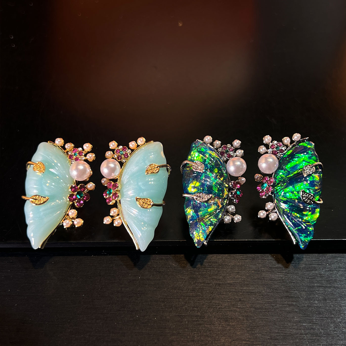 炫彩蝴蝶国潮设计感时尚复古宫廷风高端vintage精致S925新中式耳