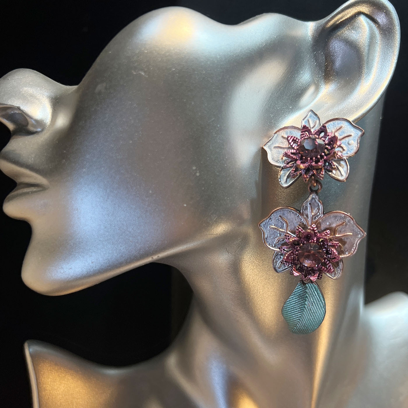 春夏新作伸糸花エナメルピアスヴィンテージレトロ小衆精致優雅S925耳飾り女