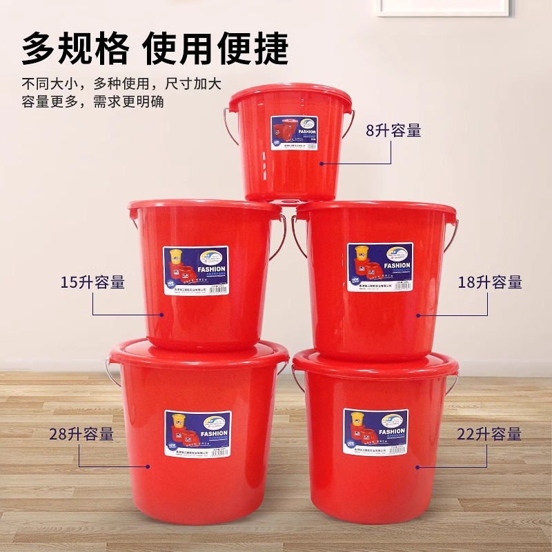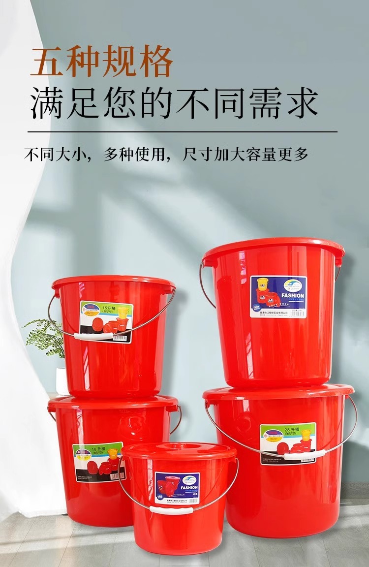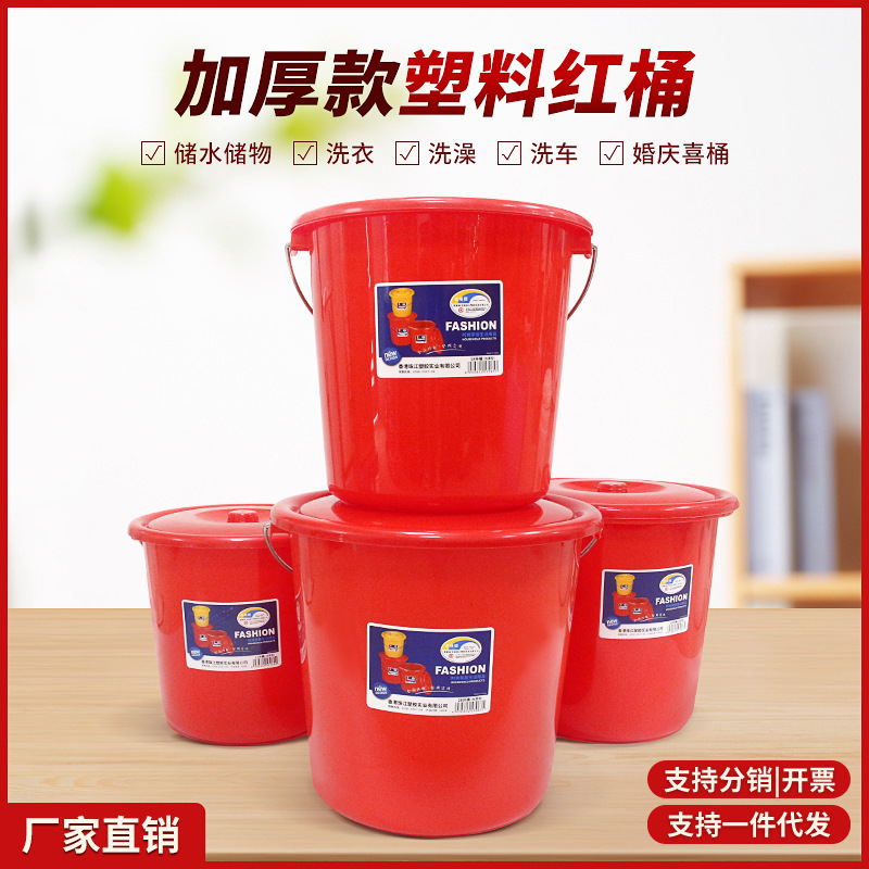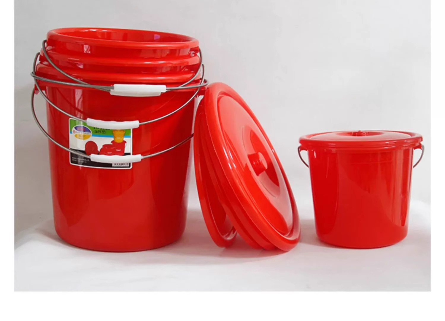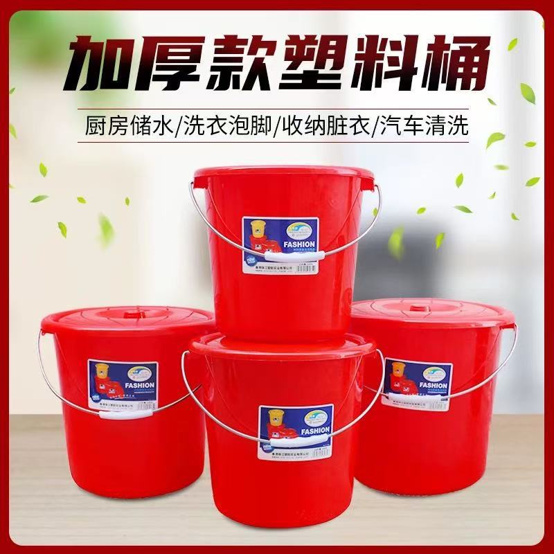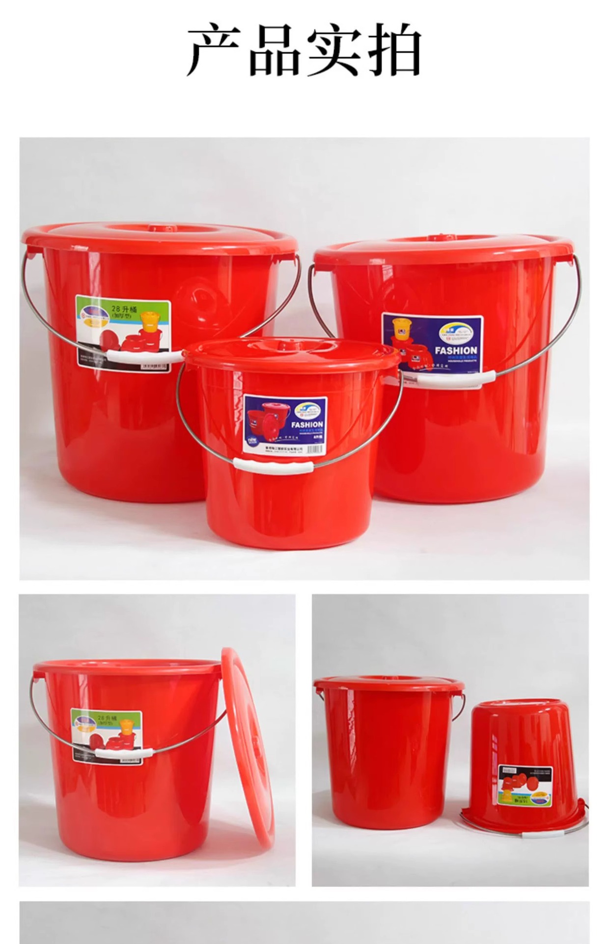 送料無料、珠江強化バケツ、蓋付き厚みのある家庭用ポータブル水貯蔵バケツ、赤い調理済みゴム製バスバケツの流通と配送
