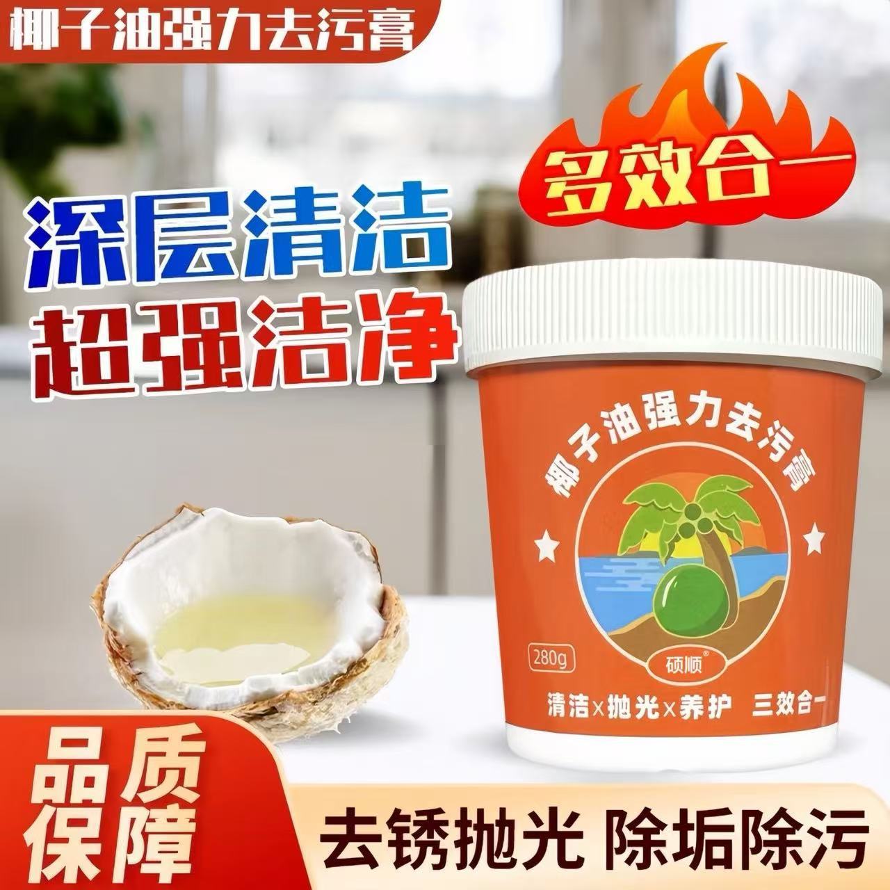 Shuoshun ココナッツオイル強力除染クリーム家庭用非損傷キッチンポット油除去洗浄剤タイル除去