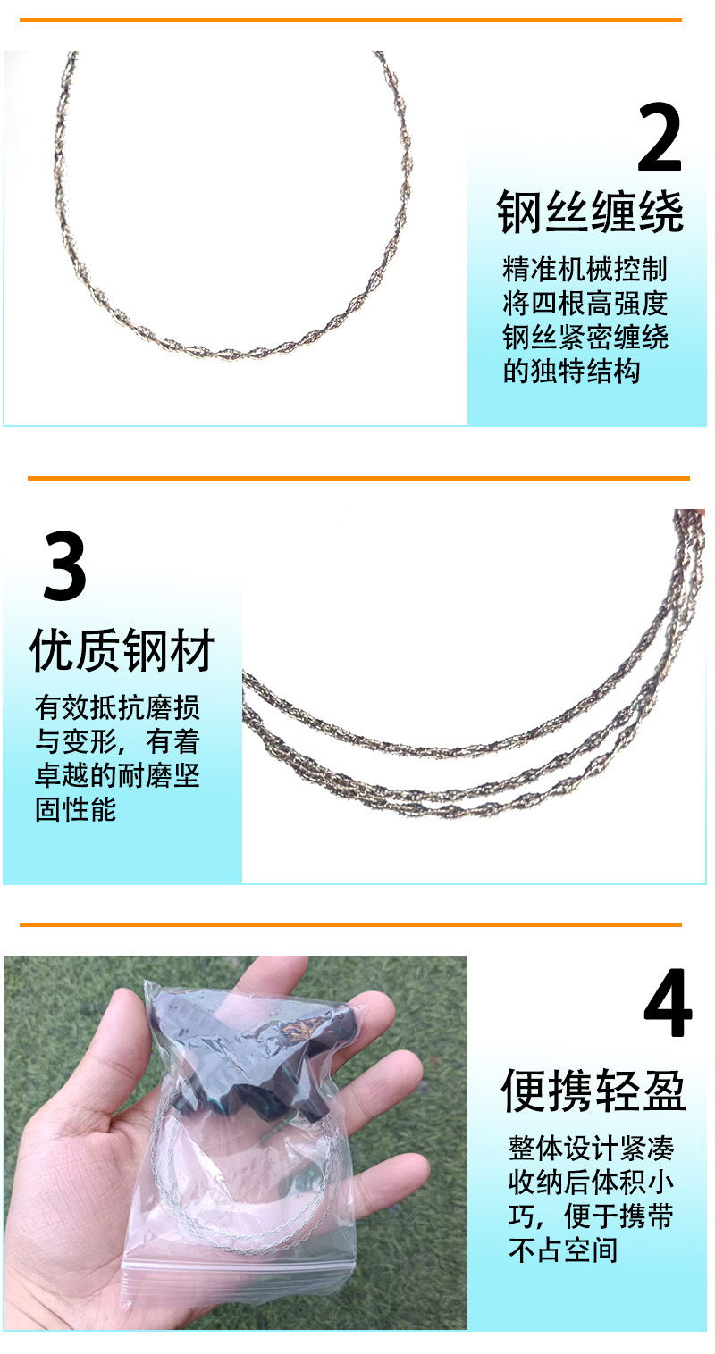 アウトドアサバイバルツール ワイヤーソー 4連ワイヤーソー サバイバルロープソー ユニバーサルソーロープソー キャンプ用ポータブルワイヤーソー