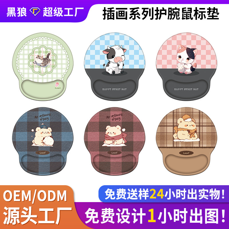 跨境硅胶防滑鼠标垫护手腕办公用鼠标垫子手托可爱女生滑鼠墊橡胶